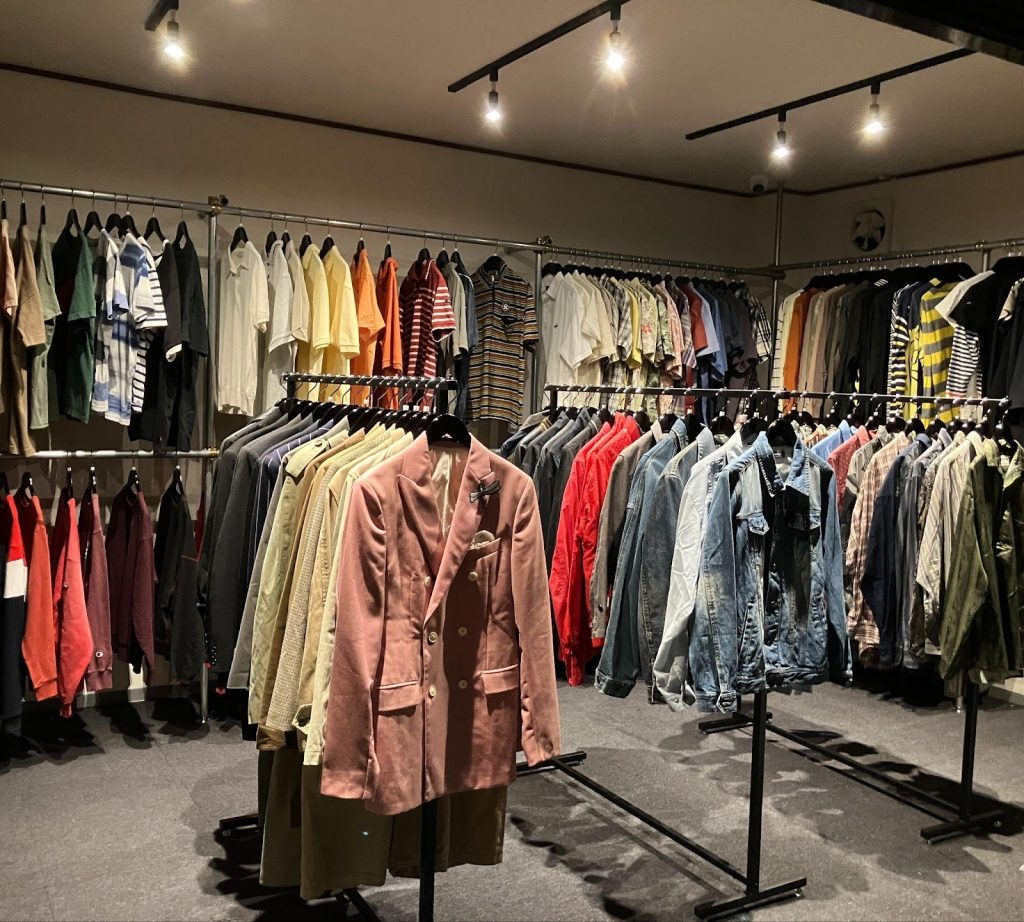 一番のこだわりは、「量もありつつ、ゆとりを持たせた見やすいレイアウト」です。従来の古着屋のように服を詰め込みすぎず、1着ずつを丁寧に見せることで、商品の価値を下げない工夫をしています。